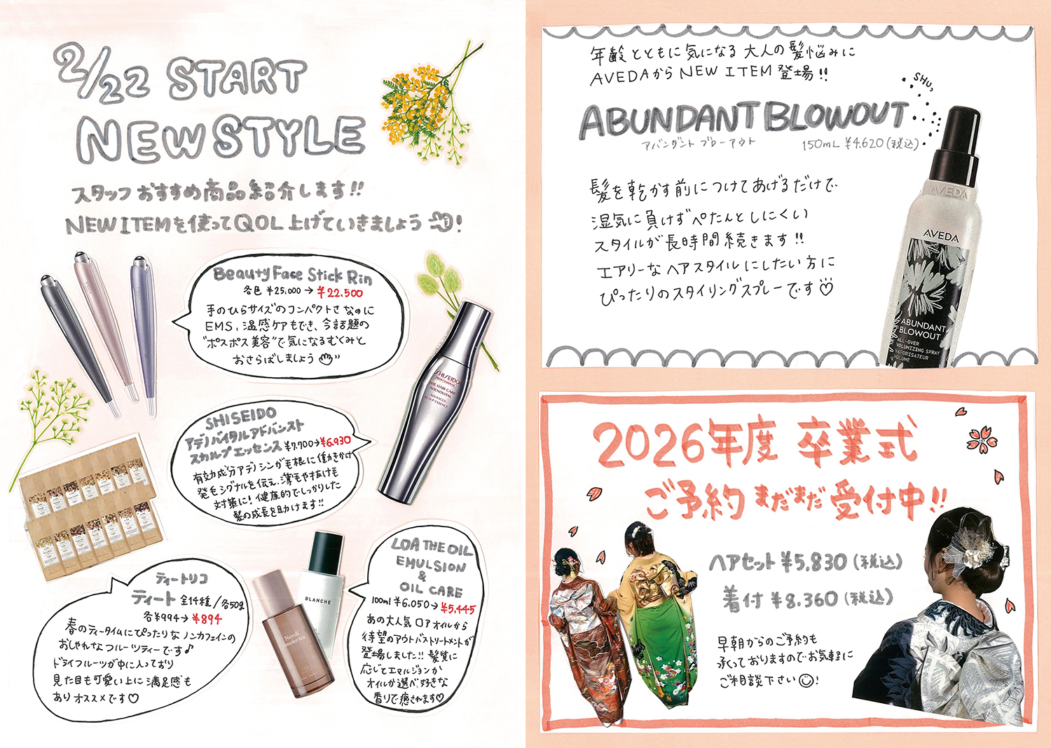 スタッフ手作りの新聞でサロンの最新情報をお届けします!ぜひご覧ください!(年4回発行)